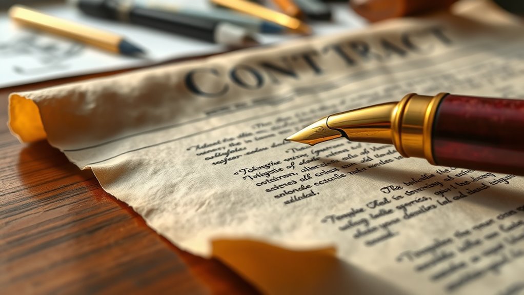 So, next time you’re signing that artist contract, remember these pitfalls. It’s amusing how clauses meant to protect can secretly bind you for years, limiting your creative freedom or draining your royalties. Ironically, what seems like a simple agreement could turn into a lifelong trap. Stay sharp, read the fine print, and protect your art—because sometimes, the biggest risks are hidden behind the most innocent-sounding clauses.