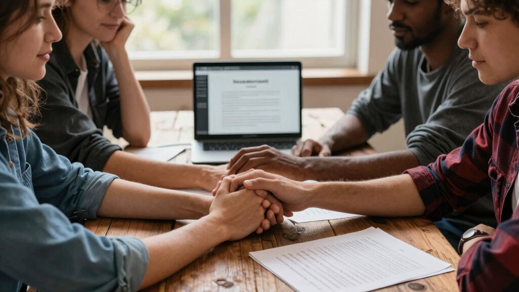 When disagreements arise, you should address creative differences openly using effective communication strategies. Encourage all members to share their perspectives respectfully and listen actively. Focus on finding common ground rather than winning arguments. Establishing clear, honest conversations early helps prevent resentment and builds trust. Remember, resolving conflicts constructively keeps your band united, ensuring everyone feels heard and valued as you work toward shared goals.