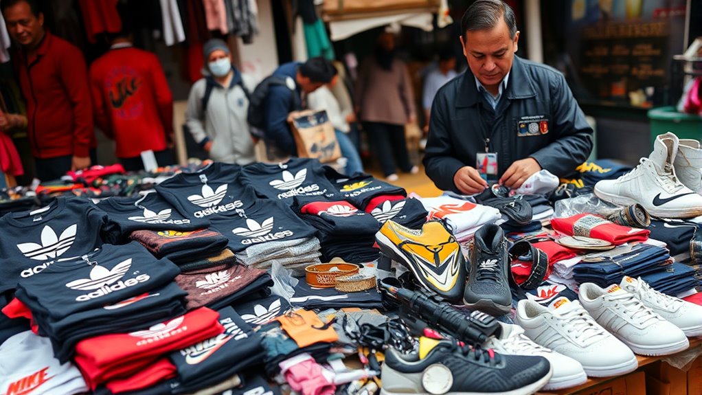 To protect your brand from bootleg merchandise, actively monitor online marketplaces, social media, and physical stores for counterfeit products. Register your trademarks and use authentication tools like QR codes or RFID tags to help identify genuine items. Educate your customers about spotting authentic products and encourage them to verify before purchasing. Swiftly take legal action against infringers and collaborate with authorities to intercept counterfeit goods. Continuing with these strategies will help you stay one step ahead of counterfeiters and safeguard your reputation.