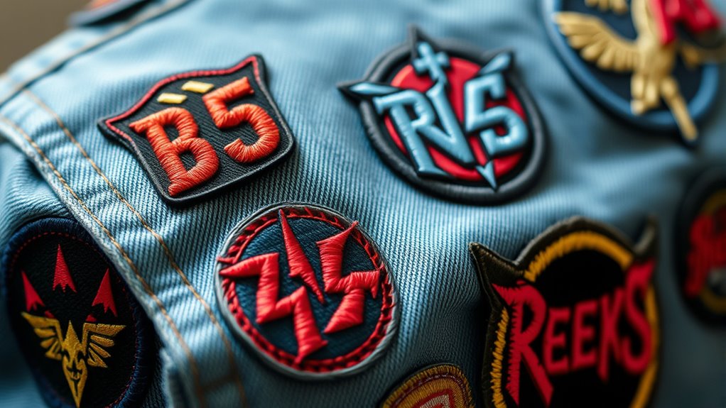 Proper storage methods play a key role in maintaining the embroidered details of your retro band patches. To keep them in pristine condition, store patches flat in acid-free sleeves or archival boxes. Avoid stacking heavy items on top, which can distort embroidery or cause tears. Keep patches away from direct sunlight, as UV rays fade colors and weaken fabric fibers over time. Maintain a stable environment with consistent temperature and humidity to prevent creases, mold, or fabric deterioration. If patches are mounted on backing, ensure they are securely attached to prevent shifting or fraying. Regularly inspect your collection for signs of damage or dust buildup, and gently clean if necessary. Proper storage guarantees your patches stay vibrant and well-preserved for years to come.