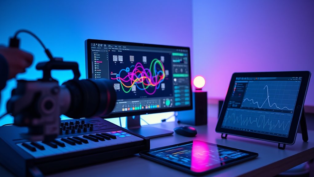 With generative AI, you can craft unique chord progressions effortlessly, boosting your creativity. Did you know that 65% of musicians say AI tools have considerably enhanced their songwriting process? Embrace these technologies to explore new harmonic landscapes and accelerate your music-making. As AI continues to evolve, your ability to innovate and experiment will only grow, making it an exciting time to plunge into AI-powered composition and open your full musical potential.