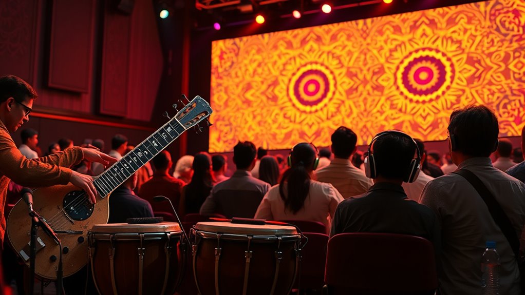 You’ll find that audiences often respond with strong engagement and emotional resonance when ethnomusicological elements are incorporated thoughtfully. These elements can evoke curiosity, deepen understanding, and create a powerful connection to diverse cultures. As a listener, you might feel inspired or moved by the authentic use of traditional sounds, which enhances your overall experience. However, respectful integration guarantees that your engagement remains positive and meaningful, fostering appreciation rather than appropriation.