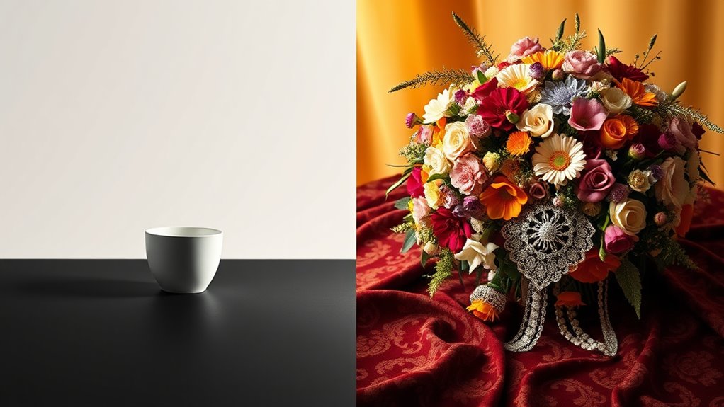 Cultural differences shape your preferences by influencing how you interpret cultural symbolism and aesthetic diversity. In some cultures, minimalism reflects clarity and harmony, aligning with values of simplicity. In others, maximalism celebrates richness and storytelling through layered details. Your cultural background guides your appreciation for either aesthetic, making your preferences deeply personal and rooted in the diverse symbolism and visual complexity that resonate with your cultural experiences.