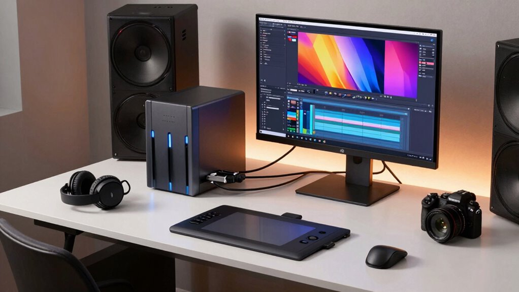 You’ll be glad to know that NAS storage easily integrates with your existing studio software. An impressive 85% of studios use NAS systems for seamless workflow. With features like cloud backup and remote access, your software can connect effortlessly, allowing you to work from anywhere. This integration streamlines collaboration, boosts productivity, and guarantees your creative projects stay synced and secure across all devices.