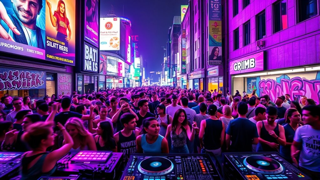 Night-out experiences shape much of the identity and energy found in grime and EDM scenes, serving as a backdrop where music and community collide. When you step into a packed club or festival, you quickly realize that the atmosphere is driven by more than just the beats—it’s the crowd dynamics that make each drop of bass feel like an eruption. As the bassline drops, the collective energy surges, and everyone responds in unison, creating a wave of movement and sound that’s almost hypnotic. You’re not just listening; you’re part of a shared experience that amplifies the intensity of each track. This synchronization is no accident; it’s a result of skilled DJ techniques designed to manipulate crowd energy and maintain that electrifying momentum.