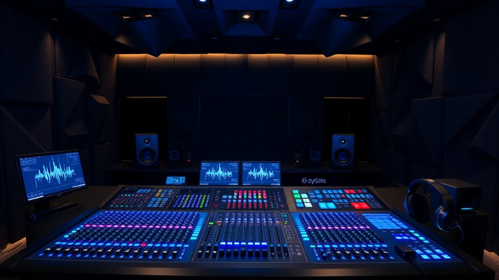 To master Dolby Atmos and 3D mixing, you’ll want to use specialized tools like digital audio workstations (DAWs) that support Atmos workflows and plugins designed for spatial audio placement. You’ll assign sounds as objects that can move freely within a 3D space, positioning them above, below, or behind the listener. Techniques involve precise placement, movement, and interaction of audio elements to create an immersive experience. Continuing further will reveal detailed methods to optimize your mixes.