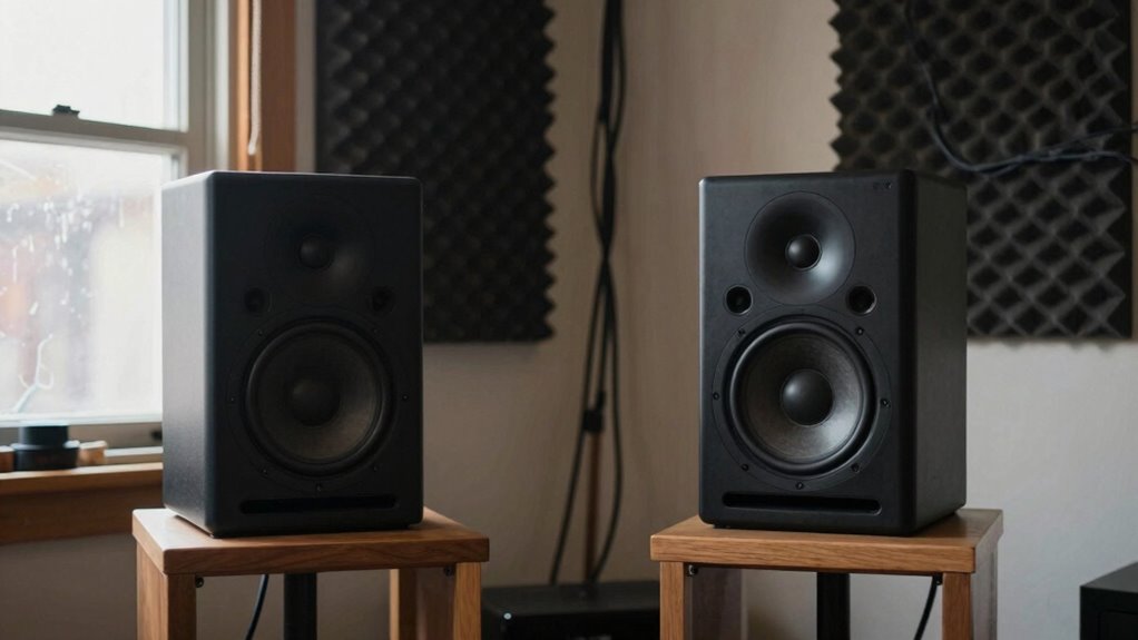 Portable or smaller monitors can be better for compromised rooms because they suit smaller room sizes and are easier to position for ideal monitor placement. Their size reduces room interactions, minimizing acoustic issues. You’ll want to experiment with placement to find the sweet spot where sound reflects less and clarity improves. While they aren’t a complete fix, smaller monitors are a practical choice when room conditions limit your options.