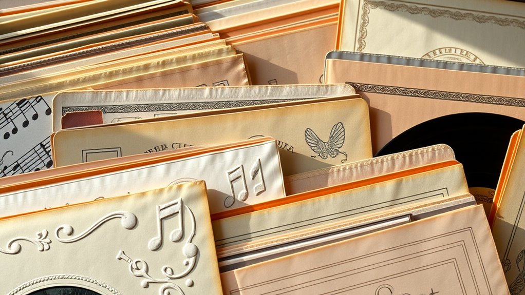 When it comes to preserving your vinyl records for the long term, the materials used in inner sleeves play a crucial role. I always look for sleeves made from acid-free materials because they prevent deterioration and yellowing over time. Acid-free sleeves help preserve both the record and the album artwork by avoiding chemical reactions that cause damage. Using archival-quality materials ensures that sleeves won’t introduce contaminants or static, which can harm sound quality. Long-term storage with acid-free sleeves minimizes risks like warping, cracking, or surface damage caused by acidic or non-archival materials. For collectors, choosing sleeves labeled as archival or acid-free is essential to maintain the original condition and value of their vinyl collection. These sleeves are a smart investment for lasting preservation.