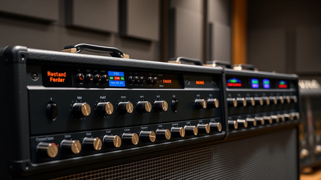 When integrating load boxes with traditional amps, I always start by ensuring compatibility and proper impedance matching. I connect the load box directly to my amplifier’s speaker output, then route the signal to my cab or recording system. I also keep my volume levels moderate to avoid damage. Regularly checking connections and testing the sound helps me maintain ideal tone and prevent issues during live or studio sessions.