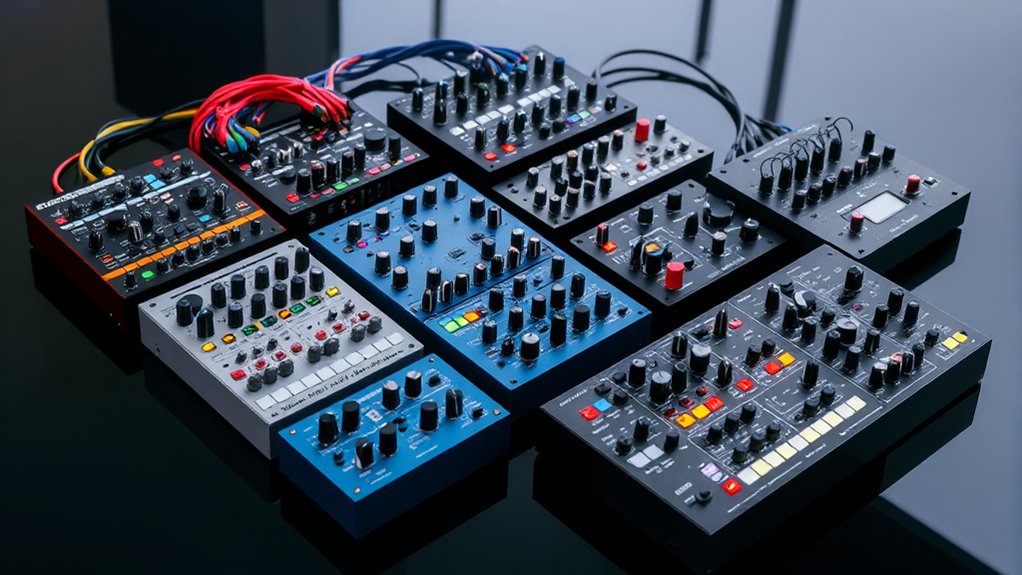 Jumpstarting your modular synth journey feels like opening a treasure chest of sonic possibilities. With these top kits, you’ll be crafting unique sounds in no time—like a painter with a brand-new palette. Remember, the right starter kit is your trusty steed on this musical adventure. So, pick one that sparks your curiosity, explore, and let your creativity flow wild. Your future soundscape is just waiting to be accessed!