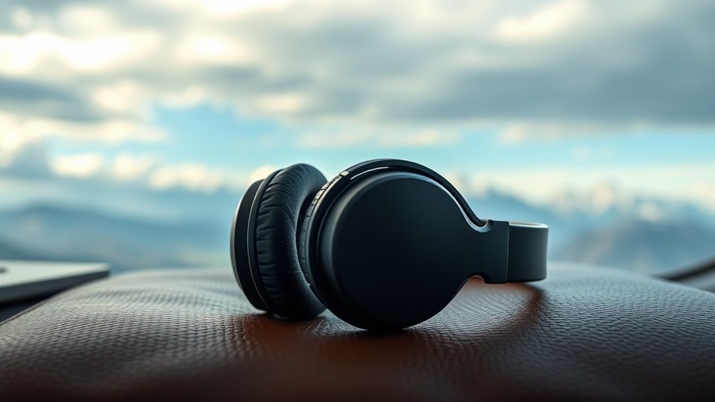 Imagine a lullaby softly wrapping around your ears—that’s how effective noise-canceling headphones can be against airplane engine noise. I’ve found they considerably reduce engine hum, creating a peaceful oasis amid the chaos. While they don’t eliminate every sound, they do a remarkable job of damping the loud, constant drone, making your flight more restful. Trust me, once you experience it, flying feels a lot more serene.