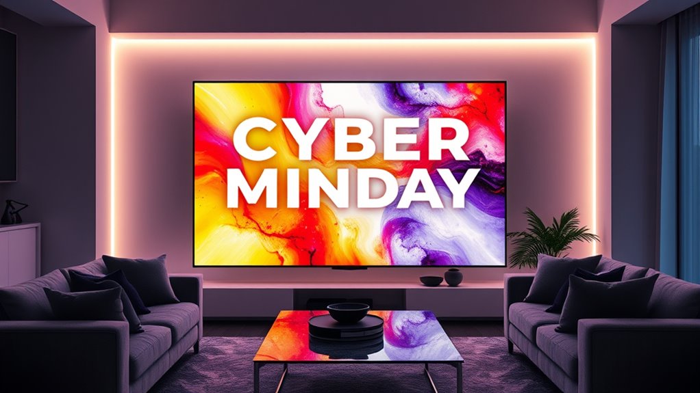 If you’re looking for the top OLED TV deals this Cyber Monday 2025, I’ve found unbeatable offers on models like LG’s OLED evo C4 and 55-inch C5, Samsung’s 85F and S95F series, and Sony’s XR8B. These TVs deliver stunning picture quality, gaming features, and smart capabilities. Whether you want vibrant visuals or immersive gaming, there’s a deal for you. Keep going, and you’ll discover the best picks to upgrade your home entertainment.