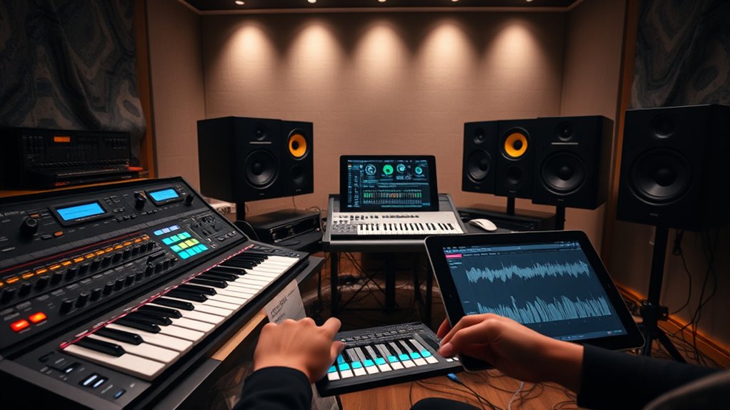 Selecting gear within your budget is just the starting point; verifying that your equipment works smoothly together is equally important. First, check that your audio interface and computer support the sample rates and bit depths your projects require. Compatibility between your DAW, sound card, plugins, and hardware controllers is essential to avoid workflow disruptions. Make sure your microphones and outboard gear connect seamlessly using your existing connectors like XLR, TRS, USB, or Thunderbolt. Additionally, verify that your studio monitors or headphones can handle the frequency response and impedance levels of your setup. Don’t forget to take into account power supply and voltage compatibility, especially if you’re working across different regions, to prevent damage or performance issues. Compatibility ensures reliability and smooth operation during your creative process.