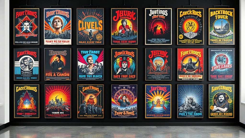 If you’re like me, building a tour poster replica set is about expressing your passion. Imagine customizing a wall with a mix of vintage and modern posters—like a fan who curated a collection blending Olivia’s Guts tour posters with Hip Hop collages. By considering size, style, and theme, you turn your space into a vibrant tribute to music. It’s not just decor; it’s a reflection of your unique musical journey.