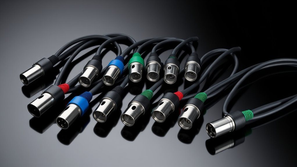 Color-coding XLR cables offers a simple yet powerful way to organize and streamline your audio setup. It allows for quick identification, which saves time during setup and reduces connection errors, especially in live performances or studio sessions. Using different colors helps keep complex systems organized, making troubleshooting and maintenance faster and more efficient. It also makes it easier to distinguish between microphone channels, instrument lines, and output feeds, improving workflow clarity. Bright, distinct colors enhance visibility in low-light environments, preventing accidental disconnections or misidentification. Additionally, consistent color schemes across your setup promote a professional look and simplify multi-cable management. Overall, color-coding is a practical approach that enhances both efficiency and organization in any professional audio environment.